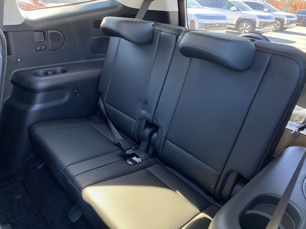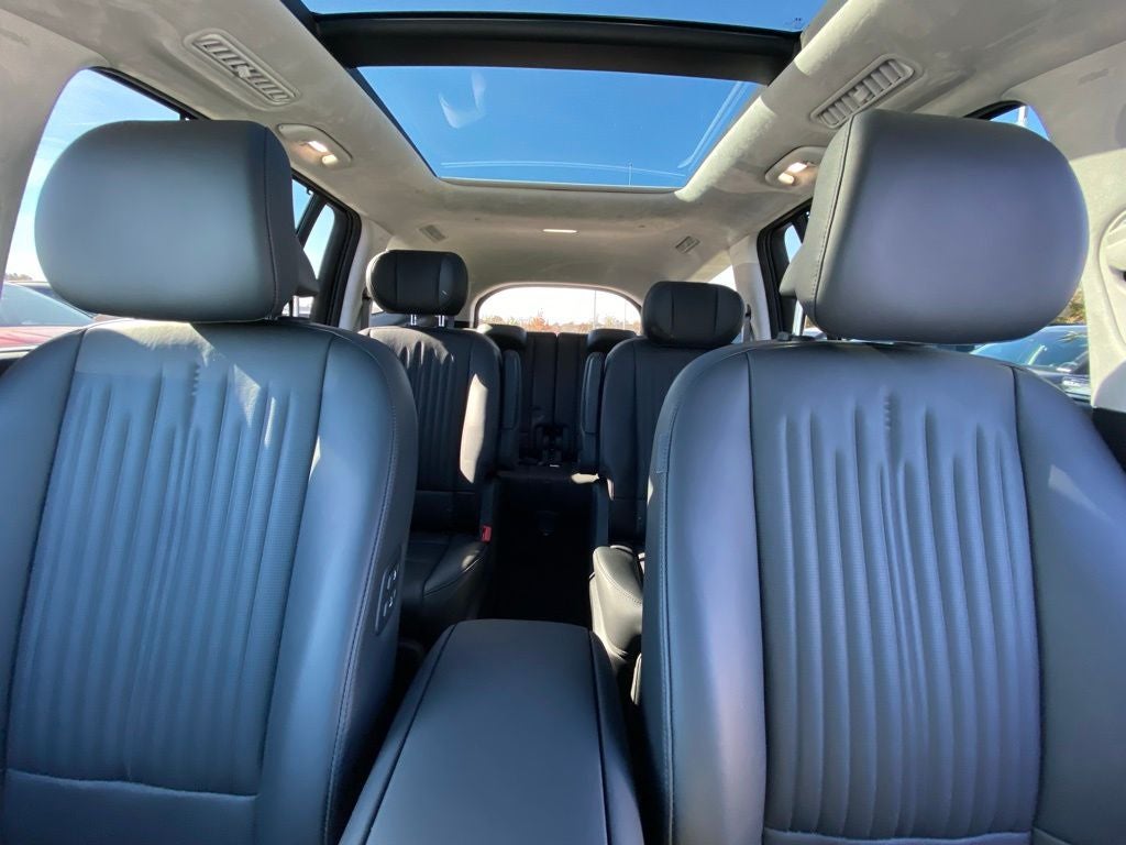 14 Speakers, 4-Wheel Disc Brakes, ABS brakes, Air Conditioning, Alloy wheels, AM/FM radio: SiriusXM, Apple CarPlay & Android Auto, Auto High-beam Headlights, Auto-dimming Rear-View mirror, Auto-leveling suspension, Automatic temperature control, Bodyside moldings, Brake assist, Bumpers: body-color, Cargo Cover, Carpeted Floor Mats, Delay-off headlights, Driver door bin, Driver vanity mirror, Dual front impact airbags, Dual front side impact airbags, Electronic Stability Control, Four wheel independent suspension, Front anti-roll bar, Front Bucket Seats, Front Center Armrest, Front dual zone A/C, Front reading lights, Fully automatic headlights, Garage door transmitter: HomeLink, Heads-Up Display, Heated door mirrors, Heated front seats, Heated rear seats, Heated steering wheel, Illuminated entry, Leather steering wheel, Low tire pressure warning, Memory seat, Navigation System, Occupant sensing airbag, Option Group 01, Outside temperature display, Overhead airbag, Overhead console, Panic alarm, Passenger door bin, Passenger vanity mirror, Power door mirrors, Power driver seat, Power Liftgate, Power moonroof: Panoramic, Power passenger seat, Power steering, Power windows, Premium Grade H-Tex Leatherette Seating Surfaces, Radio: AM/FM/SiriusXM/HD Audio System, Rain sensing wipers, Rear air conditioning, Rear anti-roll bar, Rear reading lights, Rear side impact airbag, Rear window defroster, Rear window wiper, Reclining 3rd row seat, Remote keyless entry, Security system, Severe Weather Kit, Speed control, Split folding rear seat, Spoiler, Steering wheel memory, Steering wheel mounted audio controls, Telescoping steering wheel, Tilt steering wheel, Traction control, Trip computer, Turn signal indicator mirrors, Variably intermittent wipers, Ventilated front seats, Ventilated rear seats, Wheels: 21 x 9J 5-Spoke Alloy.