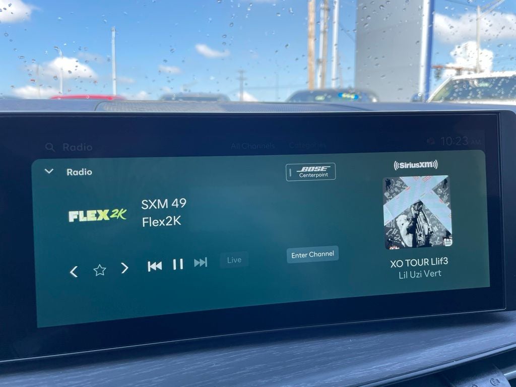 - Radio: AM/FM/HD Bose Premium Audio System -inc: 12 speakers including subwoofer, external amplifier, 12.3" wide touchscreen, Apple CarPlay and Android Auto, Bluetooth® hands-free w/wireless audio streaming, dynamic voice recognition, USB connectivity, SiriusXM, Blue Link+ connected car system, over-the-air updating capability, navigation system including traffic flow w/incident data via HD Radio (HERE) and rear seat quiet mode