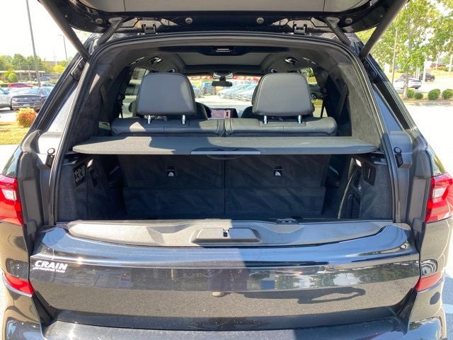 Bluetooth®, Safety Package, X7 M50i, 4D Sport Utility, 4.4L V8 DOHC 32V, 8-Speed Automatic, AWD, Black Sapphire Metallic, Black w/(Ind) Full Merino Leather Upholstery, 16 Speakers, 3.15 Axle Ratio, 3rd row seats: split-bench, 4-Wheel Disc Brakes, 5-Zone Automatic Climate Control, ABS brakes, Active Driving Assistant Pro, Air Conditioning, AM/FM radio: SiriusXM, AM/FM Stereo, Apple CarPlay Compatibility, Auto High-beam Headlights, Auto tilt-away steering wheel, Auto-dimming door mirrors, Auto-dimming Rear-View mirror, Auto-leveling suspension, Automatic temperature control, Brake assist, Bumpers: body-color, Cold Weather Package, Compass, Delay-off headlights, Door auto-latch, Driver door bin, Driver vanity mirror, Driving Assistance Professional Package, Dual front impact airbags, Dual front side impact airbags, Electronic Stability Control, Emergency communication system: BMW Assist eCall, Executive Package, Extended Shadowline Trim, Extended Traffic Jam Assistant, Four wheel independent suspension, Front & Rear Heated Seats, Front anti-roll bar, Front Bucket Seats, Front Center Armrest, Front dual zone A/C, Front fog lights, Front Massaging Seats, Front reading lights, Front Ventilated Seats, Fully automatic headlights, Garage door transmitter, Genuine wood console insert, Genuine wood dashboard insert, Genuine wood door panel insert, Glass Controls, harman/kardon Surround Sound System, harman/kardon® Speakers, Head restraints memory, Head-Up Display, Heads-Up Display, Heated & Cooled Cup Holders, Heated door mirrors, Heated Front Seats, Heated front seats, Heated Front Seats Armrests & Steering Wheel, Illuminated entry, Knee airbag, Leather Shift Knob, Low tire pressure warning, Luxury Seating Package, Memory seat, Multi-Contour Seats, Navigation System, Occupant sensing airbag, Outside temperature display, Overhead airbag, Panic alarm, Panoramic Sky Lounge LED Roof, Passenger door bin, Passenger vanity mirror, Power adjustable front head restraints, Power door mirrors, Power driver seat, Power Front Seats, Power moonroof, Power passenger seat, Power steering, Power windows, Radio data system, Rain sensing wipers, Rear air conditioning, Rear anti-roll bar, Rear dual zone A/C, Rear reading lights, Rear seat center armrest, Rear window defroster, Rear window wiper, Reclining 3rd row seat, Remote keyless entry, Roof rack: rails only, Second-Row Captain's Chairs, Security system, SiriusXM Satellite Radio, Speed control, Speed-sensing steering, Speed-Sensitive Wipers, Split folding rear seat, Spoiler, Sport steering wheel, Steering wheel memory, Steering wheel mounted audio controls, Tachometer, Telescoping steering wheel, Tilt steering wheel, Traction control, Trip computer, Turn signal indicator mirrors, Variably intermittent wipers, Vernasca Leather Upholstery, Wheels: 22 x 9.5 Fr & 22 x 10.5 Rr M V-Spoke.