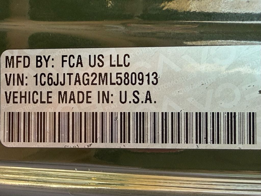 2021 Jeep Gladiator 4WD 3.6L V6 24V VVT 8-Speed Automatic Off Road Package, New Tires, New Brakes, Lift, Wheels and Tires, Gladiator Sport OFF ROAD READY / LIFT WHEELS AND TIRES, 4D Crew Cab, 3.6L V6 24V VVT, 8-Speed Automatic, 4WD, Sarge Green Clearcoat, Black Cloth, 110 mph Vehicle Max Speed Calibration, 240 Amp Alternator, 4-Wheel Disc Brakes, 4.10 Rear Axle Ratio, 7.0 Touch Screen Display, ABS brakes, Air Conditioning w/Auto Temperature Control, Anti-Lock 4-Wheel Disc Heavy Duty Brakes, Anti-Spin Differential Rear Axle, Apple CarPlay, Automatic Headlamps, Black 3-Piece Hard Top, Black Molded-In-Color Fender Flares (2-Piece), Body Color Fender Flares (2-Piece), Brake assist, Class IV Hitch Receiver, Cloth Low-Back Bucket Seats, Cluster 7.0 TFT Color Display, Compass, Convenience Group, Dana M210 Wide Front Axle, Dana M220 Wide Rear Axle, Daytime Running Lamp System, Deep Tint Sunscreen Windows, Delay-off headlights, Dual front impact airbags, Dual front side impact airbags, Electronic Stability Control, For More Info, Call 800-643-2112, Freedom Panel Storage Bag, Front 1-Touch Down Power Windows, Front anti-roll bar, Front fog lights, Google Android Auto, GPS Antenna Input, GVWR: 6,250 lbs w/Max Tow Package, Heavy-Duty Engine Cooling, Integrated Center Stack Radio, Integrated roll-over protection, Integrated Voice Command w/Bluetooth®, Leather Wrapped Steering Wheel, Low tire pressure warning, Max Tow Package w/4.10 Axle Ratio, Molded in Color Bumper w/Accent Color, Normal Duty Plus Suspension, Normal Duty Suspension, Occupant sensing airbag, Outside temperature display, ParkView Rear Back-Up Camera, Passenger vanity mirror, Popular Equipment Package, Power Heated Mirrors, Power Tailgate Lock, Quick Order Package 23S Sport S, Radio: Uconnect 4 w/7 Display, Rear anti-roll bar, Rear reading lights, Rear Sliding Window, Rear Window Defroster, Remote Keyless Entry, Security Alarm, Side Steps, SiriusXM Radio Service, SiriusXM Satellite Radio, Speed control, Speed Sensitive Power Locks, Sport S, Sun Visors w/Illuminated Vanity Mirrors, Tachometer, Technology Group, Telescoping steering wheel, Tilt steering wheel, Traction control, Trailer Hitch Zoom, Trailer Tow Package, Trip computer, Universal Garage Door Opener, USB Host Flip. CARFAX One-Owner. Clean CARFAX.