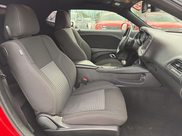 Clean CARFAX. Bluetooth®, Safety Package, Challenger SE, 2D Coupe, 3.6L V6 24V VVT, 8-Speed Automatic, RWD, Torred Clearcoat, Black w/Houndstooth Cloth Performance Seats or Nappa/Alcantara Performance Seats, 4-Wheel Disc Brakes, 6 Speakers, ABS brakes, Air Conditioning, AM/FM radio, Anti-whiplash front head restraints, Apple CarPlay, Apple CarPlay/Android Auto, Auto-dimming Rear-View mirror, Automatic temperature control, Brake assist, Bumpers: body-color, Compass, Compass Gauge, Delay-off headlights, Driver door bin, Driver vanity mirror, Dual front impact airbags, Dual front side impact airbags, Electronic Stability Control, Four wheel independent suspension, Front anti-roll bar, Front Bucket Seats, Front Center Armrest, Front dual zone A/C, Front License Plate Bracket, Front reading lights, Fully automatic headlights, Google Android Auto, GPS Antenna Input, Heated door mirrors, Houndstooth Cloth Sport Seat, Illuminated entry, Integrated Center Stack Radio, Integrated Voice Command w/Bluetooth®, Leather Shift Knob, Low tire pressure warning, Media Hub (2 USB, AUX), Outside temperature display, Overhead airbag, Overhead console, Panic alarm, ParkView Rear Back-Up Camera, Passenger door bin, Passenger vanity mirror, Power door mirrors, Power driver seat, Power steering, Power windows, Quick Order Package 2EA, Radio data system, Radio: Uconnect 4 w/7 Display, Rear anti-roll bar, Rear reading lights, Rear seat center armrest, Rear window defroster, Remote keyless entry, Security system, Speed control, Speed-sensing steering, Split folding rear seat, Spoiler, Steering wheel mounted audio controls, Tachometer, Telescoping steering wheel, Tilt steering wheel, Traction control, Trip computer, USB Host Flip, Variably intermittent wipers, Wheels: 18 x 7.5 Cast Aluminum.