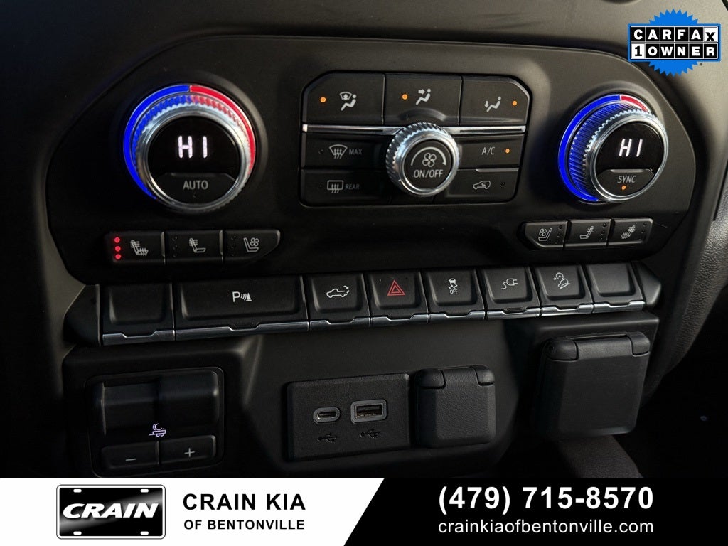 One Owner, 10-Way Power Driver Seat Adjuster w/Lumbar, 10-Way Power Passenger Seat Adjuster w/Lumbar, 12-Volt Rear Auxiliary Power Outlet, 120-Volt Bed Mounted Power Outlet, 120-Volt Instrument Panel Power Outlet, 170 Amp Alternator, 2 USB Ports, 2 USB Ports (1st Row), 3.23 Rear Axle Ratio, 4-Wheel Disc Brakes, 7 Speakers, ABS brakes, Adaptive Ride Control Suspension, Adaptive suspension, Air Conditioning, Alloy wheels, AM/FM radio: SiriusXM with 360L, Apple CarPlay/Android Auto, Auto-dimming door mirrors, Auto-dimming Rear-View mirror, Auto-Locking Rear Differential, Automatic Stop/Start, Automatic temperature control, Auxiliary External Transmission Oil Cooler, Brake assist, Bumpers: body-color, Cat-Back Performance Exhaust (LPO), Chrome Recovery Hooks, Chrome Wheel To Wheel Assist Steps, Color-Keyed Carpeting Floor Covering, Compass, Deep-Tinted Glass, Delay-off headlights, Driver Alert Package I, Driver door bin, Driver Memory, Driver vanity mirror, Dual front impact airbags, Dual front side impact airbags, Electric Rear-Window Defogger, Electronic Stability Control, Floor-Mounted Center Console, Forge Perforated Leather Seat Trim, Front anti-roll bar, Front Bucket Seats, Front Center Armrest, Front dual zone A/C, Front fog lights, Front License Plate Kit, Front Prem Floor Liners w/Removable Carpet Insert, Front reading lights, Front wheel independent suspension, Fully automatic headlights, Garage door transmitter, Genuine wood console insert, Genuine wood door panel insert, GMC Connected Access Capable, HD Rear Vision Camera, Heated door mirrors, Heated Driver & Front Outboard Passenger Seating, Heated front seats, Heated steering wheel, Heavy-Duty Air Filter, Hill Descent Control, Hitch Guidance, Hitch Guidance w/Hitch View, Illuminated entry, In-Vehicle Trailering App, Integrated Trailer Brake Controller, Keyless Open & Start, Lane Change Alert w/Side Blind Zone Alert, LED Cargo Area Lighting, Low tire pressure warning, Manual Tilt-Wheel & Telescoping Steering Column, Memory seat, Navigation System, Not Equipped w/Front & Rear Park Assist, Occupant sensing airbag, OnStar & GMC Connected Services Capable, Outside temperature display, Overhead airbag, Overhead console, Panic alarm, Passenger door bin, Passenger vanity mirror, Power Door Locks, Power door mirrors, Power driver seat, Power Front Passenger Windows w/Express Up/Down, Power Front Windows w/Driver Express Up/Down, Power passenger seat, Power Rear Windows w/Express Down, Power Sliding Rear Window w/Rear Defogger, Power steering, Power Sunroof, Power windows, Preferred Equipment Group 5SA, Premium audio system: Premium GMC Infotainment System, Premium Bose 7-Speaker Sound System, ProGrade Trailering System, Radio data system, Radio: Premium GMC Infotainment Sys w/Navigation, Rear Cross Traffic Alert, Rear Dual USB Charging-Only Ports, Rear Prem Floor Liners w/Removable Carpet Insert, Rear reading lights, Rear seat center armrest, Rear step bumper, Rear Wheelhouse Liners, Rear window defroster, Remote keyless entry, Remote Vehicle Starter System, Safety Alert Seat, Security system, Signature Denali Grille, SiriusXM w/360L, Speed control, Speed-sensing steering, Split folding rear seat, Spray-On Pickup Bed Liner w/Denali Logo, Steering Wheel Audio Controls, Steering wheel mounted audio controls, Tachometer, Telescoping steering wheel, Theft Deterrent System (Unauthorized Entry), Tilt steering wheel, Traction control, Trailer Tire Pressure Monitor System, Trailering Package, Trip computer, Ultrasonic Front & Rear Park Assist, Universal Home Remote, Varia