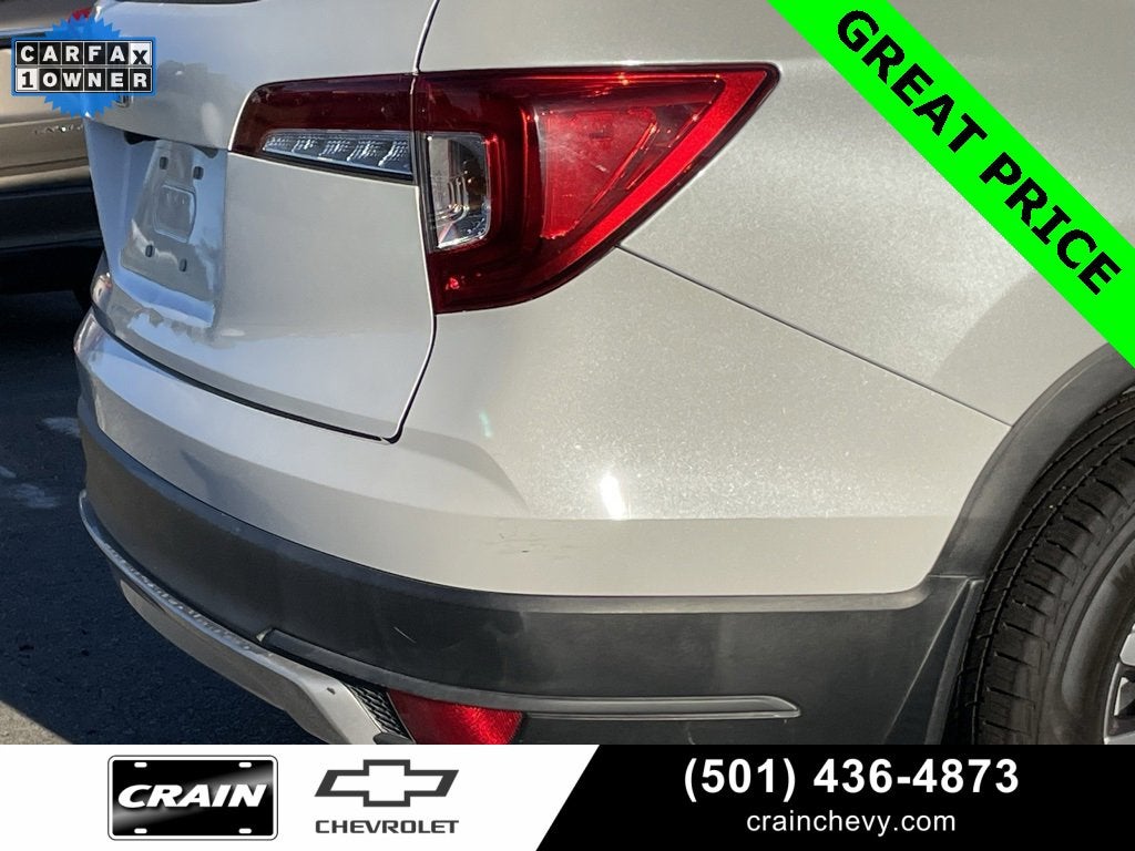 100 Hour Love It or Leave It Exchange Policy, 100 Year or 100,000 Mile Power-Train Warranty, *** 1 Owner CARFAX ***, Leather, Heated Seats, Cruise Control, Steering Wheel Controls, Keyless Entry, Bluetooth®, USB / AUV Ports, MP3 Player, SiriusXM Satellite Radio, Alloy Wheels, Premium Wheels, Premium Audio, Color Touchscreen Display, Backup / Rear View Camera, Pilot EX-L, 4D Sport Utility, 3.5L V6 24V SOHC i-VTEC, 9-Speed Automatic, FWD, Platinum White Pearl, Black w/Leather Seat Trim, 18 Machine-Finished Alloy Wheels, 3rd row seats: split-bench, 4-Wheel Disc Brakes, 4.33 Axle Ratio, 7 Speakers, A/V remote: CabinControl, ABS brakes, Air Conditioning, Alloy wheels, AM/FM radio: SiriusXM, Apple CarPlay/Android Auto, Auto High-beam Headlights, Auto-dimming Rear-View mirror, Automatic temperature control, Blind Spot Information (BSI) System warning, Brake assist, Bumpers: body-color, Delay-off headlights, Driver door bin, Driver vanity mirror, Dual front impact airbags, Dual front side impact airbags, Electronic Stability Control, Emergency communication system: HondaLink Assist, Exterior Parking Camera Rear, Forward collision: Collision Mitigation Braking System (CMBS) + FCW mitigation, Four wheel independent suspension, Front anti-roll bar, Front Bucket Seats, Front Center Armrest, Front dual zone A/C, Front fog lights, Front reading lights, Fully automatic headlights, Garage door transmitter: HomeLink, Heated door mirrors, Heated Front Bucket Seats, Heated front seats, Illuminated entry, Lane departure: Lane Keeping Assist System (LKAS) active, Leather Seat Trim, Low tire pressure warning, Memory seat, Occupant sensing airbag, Outside temperature display, Overhead airbag, Overhead console, Panic alarm, Passenger door bin, Passenger vanity mirror, Power door mirrors, Power driver seat, Power Liftgate, Power moonroof, Power passenger seat, Power steering, Power windows, Radio data system, Radio: 215-Watt Audio System, Rear air conditioning, Rear anti-roll bar, Rear reading lights, Rear seat center armrest, Rear window defroster, Rear window wiper, Reclining 3rd row seat, Remote keyless entry, Security system, Speed control, Speed-sensing steering, Speed-Sensitive Wipers, Split folding rear seat, Spoiler, Steering wheel mounted audio controls, Tachometer, Telescoping steering wheel, Tilt steering wheel, Traction control, Trip computer, Turn signal indicator mirrors, Variably intermittent wipers.