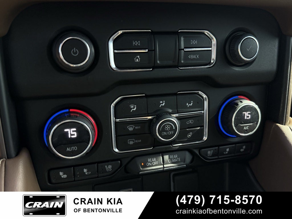 Jet Black/Mocha Leather, 15 Diagonal Multi-Color Head-Up Display, 1st & 2nd Row Color-Keyed Carpeted Floor Mats, 2-Speed Active Electronic AutoTrac Transfer Case, 3.23 Rear Axle Ratio, 3rd Row 60/40 Power-Folding Split-Bench Seat, 3rd row seats: split-bench, 4-Wheel Disc Brakes, ABS brakes, Adaptive Cruise Control, Adaptive suspension, Advanced Technology Package, Advanced Trailering PKG, Air Conditioning, Alloy wheels, AM/FM radio: SiriusXM with 360L, Apple CarPlay/Android Auto, Auto High-beam Headlights, Auto-dimming door mirrors, Auto-dimming Rear-View mirror, Auto-leveling suspension, Automatic temperature control, Bose 10-Speaker Centerpoint Surround Audio Sys Ft, Brake assist, Bright Front & Rear Door Sill Plates, Bumpers: body-color, Chrome Door Handles w/Body-Color Strip, Color-Keyed Carpeting Floor Covering, Compass, Delay-off headlights, Driver & Front Outboard Passenger Airbags, Driver door bin, Driver vanity mirror, Dual Exhaust System, Dual front impact airbags, Dual front side impact airbags, Dual-Pane Power Panoramic Sunroof, Electronic Stability Control, Emergency communication system: OnStar and Chevrolet connected services capable, Enhanced Automatic Emergency Braking, Enhanced Automatic Parking Assist, Enhanced Driver Information Center, Exterior Parking Camera Rear, Extra Capacity Cooling System, Floor Console, Four wheel independent suspension, Front anti-roll bar, Front Bucket Seats, Front Center Armrest, Front dual zone A/C, Front High-Back Reclining Bucket Seats, Front reading lights, Fully automatic headlights, Garage door transmitter, Hands-Free Rear Power Programmable Liftgate, HD Surround Vision, Heads-Up Display, Heated & Ventilated Driver & Front Passenger Seats, Heated 2nd Row Outboard Seats, Heated door mirrors, Heated Driver & Front Passenger Seats, Heated front seats, Heated rear seats, Heated Steering Wheel, Heated steering wheel, Hill Descent Control, Hitch Guidance w/Hitch View, Illuminated entry, Infotainment Display, Inside Rearview Auto-Dimming Rear Camera Mirror, Integrated Trailer Brake Controller, Lane Change Alert w/Side Blind Zone Alert, LED Daytime Running Lamps, License Plate Front Mounting Package, Low tire pressure warning, Magnetic Ride Control Suspension, Max Trailering Package, Memory seat, Memory Settings, Navigation System, Not Equipped w/4-Way Driver & Fr Pass Pwr Lumbar, Not Equipped w/Wheel Locks (LPO), Not Equipped w/Wireless Charging, Occupant sensing airbag, Outside Heated Power-Adjustable Mirrors, Outside temperature display, Overhead airbag, Overhead console, Panic alarm, Passenger door bin, Passenger vanity mirror, Perforated Leather Seat Trim, Power door mirrors, Power driver seat, Power Liftgate, Power passenger seat, Power Release 2nd Row Bucket Seats, Power steering, Power Tilt & Telescopic Steering Column, Power windows, Power-Retractable Assist Steps, Preferred Equipment Group 3LZ, Premium audio system: Chevrolet Infotainment 3 Premium, Radio: Chevrolet Infotainment 3 Premium System, Rain sensing wipers, Rear air conditioning, Rear anti-roll bar, Rear Camera Mirror Washer, Rear Cross Traffic Alert, Rear Pedestrian Alert, Rear reading lights, Rear Seat Media System, Rear window defroster, Rear window wiper, Remote keyless entry, Remote Start, Reverse Automatic Braking, Roof rack: rails only, Safety Alert Seat, Security system, Set of 4 Wheel Locks (LPO), SiriusXM Radio w/360L, Smart Trailer Integration Indicator, Speed control, Speed-sensing steering, Split folding rear seat, Spoiler, Steering wheel memory, Steering wheel mounted audio controls, Super Cruise, Super Cruise (DISC), Tachometer, Telescoping steering wheel, Tilt steering wheel, Traction control, Trailer Side Blind Zone Alert, Trip computer, Turn signal indicator mirrors, Universal Home Remote, Variably intermittent wipers, Ventilated front seats, Voltmeter, Wheels: 22 x 9 Sterling Silver Premium Painted, Wireless Chargin
