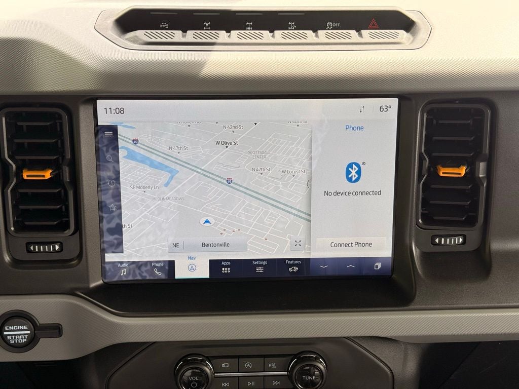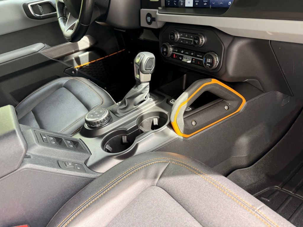 2023 Ford Bronco 4WD 2.7L EcoBoost V6 10-Speed Automatic 12 LCD Capacitive Touchscreen w/Swipe Capability, 2-Door Intelligent Access w/Lock/Unlock, 360-Degree Camera, 4-Wheel Disc Brakes, 4.7 Final Drive Ratio, 7 Speakers, ABS brakes, Additional Sound Deadening, Air Conditioning, Alloy wheels, AM/FM radio: SiriusXM with 360L, AM/FM Stereo, Ambient Footwell Lighting, Auto High-Beam Headlamps, Auto High-beam Headlights, Auto-Dimming Interior Rear-View Mirror, BLIS Blind Spot Information System, Brake assist, Carbonized Gray Molded-In-Color Hard Top, Compass, Connected Navigation, Delay-off headlights, Dr & Pass Illuminated Sliding Visor Vanity Mirrors, Driver door bin, Driver vanity mirror, Dual front impact airbags, Dual front side impact airbags, Dual-Zone Electronic Automatic Temperature Control, Electronic Stability Control, Emergency communication system: 911 Assist, Enhanced Voice Recognition, Equipment Group 333A High Package, Exterior Parking Camera Rear, Front anti-roll bar, Front Bucket Seats, Front Center Armrest, Front Parking Sensors, Front reading lights, Front Row Heated Seats, Front Row Top Panels Storage Bag, Front wheel independent suspension, Fully automatic headlights, Hard Top Sound Deadening Headliner, Hard Top Sound Deadening Headliner (DISC), Heated door mirrors, High Clearance Fender Flares, High Clearance Suspension, Illuminated entry, Information on Demand Panel, Integrated roll-over protection, Lane-Keeping System, Leather Shift Knob, Low tire pressure warning, Marine Grade Vinyl Bucket Seats, Occupant sensing airbag, Outside temperature display, Overhead airbag, Overhead console, Panic alarm, Passenger door bin, Passenger vanity mirror, Position-Sensitive Bilstein Shock Absorbers, Power door mirrors, Power Outlet - Back Side of Center Floor Console, Power steering, Power windows, Pre-Collision Assist w/Automatic Emergency Braking, Radio data system, Rear Parking Sensors, Rear-View Camera, Rear-Window Defroster & Washer, Remote keyless entry, Sasquatch Package, Security system, Sideview Mirrors, SiriusXM Radio w/360L, Speed control, Split folding rear seat, Steering wheel mounted audio controls, SYNC 4, Tachometer, Telescoping steering wheel, Tilt steering wheel, Towing Capability, Traction control, Trip computer, Variably intermittent wipers, Voltmeter, Wheels: 17 Black High Gloss-Painted Aluminum, Wheels: 17 Machined Carbonized Aluminum. CARFAX One-Owner.