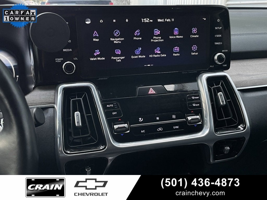 100 Hour Love It or Leave It Exchange Policy, 100 Year or 100,000 Mile Power-Train Warranty, *** 1 Owner CARFAX ***, *** Clean CARFAX ***, Navigation / GPS, Sunroof / Moonroof / Panoramic Roof, Leather, Heated Seats, Heated 2nd Row, Cruise Control, Steering Wheel Controls, Keyless Entry, Bluetooth®, USB / AUV Ports, MP3 Player, SiriusXM Satellite Radio, Power Liftgate, Alloy Wheels, Premium Wheels, Parking Sensors, Rear Park Assist, Blind Spot Warning System, Rear Cross Traffic Alert and Braking, Lane Keep Assist, Forward Collision Alert, Premium Audio, BOSE Audio System, Color Touchscreen Display, Backup / Rear View Camera, Wireless Charger, Sorento X-Line SX Prestige, 4D Sport Utility, 2.5L I4 DGI Turbocharged DOHC 16V LEV3-ULEV70 281hp, 8-Speed DCT, AWD, Ebony Black, Black w/Perforated Genuine Leather Seat Trim, 12 Speakers, 3.316 Axle Ratio, 3rd row seats: split-bench, 4-Wheel Disc Brakes, ABS brakes, Air Conditioning, Alloy wheels, AM/FM radio: SiriusXM, Apple CarPlay & Android Auto, Auto High-beam Headlights, Auto-dimming Rear-View mirror, Automatic temperature control, Brake assist, Bumpers: body-color, Cargo Cover, Carpet Floor Mats, Delay-off headlights, Driver door bin, Driver vanity mirror, Dual front impact airbags, Dual front side impact airbags, Electronic Stability Control, Emergency communication system, Folding Cargo Tray, Four wheel independent suspension, Front anti-roll bar, Front Bucket Seats, Front Center Armrest, Front dual zone A/C, Front fog lights, Front reading lights, Fully automatic headlights, Garage door transmitter: HomeLink, Heated & Ventilated Front Bucket Seats, Heated door mirrors, Heated front seats, Heated rear seats, Heated steering wheel, Illuminated entry, Knee airbag, Leather steering wheel, Low tire pressure warning, Memory seat, Navigation System, Occupant sensing airbag, Outside temperature display, Overhead airbag, Overhead console, Panic alarm, Passenger door bin, Passenger vanity mirror, Perforated Genuine Leather Seat Trim, Power door mirrors, Power driver seat, Power Liftgate, Power moonroof, Power passenger seat, Power steering, Power windows, Radio data system, Radio: AM/FM Bose Premium Audio System, Rain sensing wipers, Rear air conditioning, Rear anti-roll bar, Rear reading lights, Rear window defroster, Rear window wiper, Remote keyless entry, Roof rack: rails only, Security system, Smart Key w/ Push Button and Remote Start, Speed control, Speed-sensing steering, Split folding rear seat, Spoiler, Steering wheel mounted audio controls, Tachometer, Telescoping steering wheel, Tilt steering wheel, Traction control, Trip computer, Turn signal indicator mirrors, Variably intermittent wipers, Ventilated front seats, Wheels: 8.5J x 20 Matte Gray Alloy.