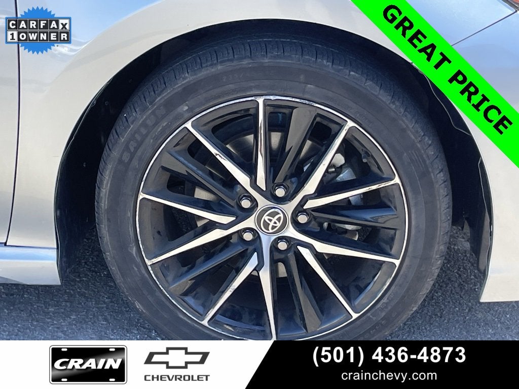 100 Hour Love It or Leave It Exchange Policy, 100 Year or 100,000 Mile Power-Train Warranty, *** 1 Owner CARFAX ***, Steering Wheel Controls, Bluetooth®, USB / AUV Ports, MP3 Player, SiriusXM Satellite Radio, Alloy Wheels, Premium Wheels, Premium Audio, Color Touchscreen Display, Backup / Rear View Camera, Camry SE, 4D Sedan, 2.5L I4 DOHC 16V, 8-Speed Automatic, FWD, Celestial Silver Metallic, Ash w/Fabric Seat Trim, 4-Wheel Disc Brakes, 6 Speakers, 8.0J x 18 Alloy Wheels, ABS brakes, Air Conditioning, Alloy wheels, AM/FM radio: SiriusXM, Apple CarPlay/Android Auto, Auto High-beam Headlights, Automatic temperature control, Brake assist, Bumpers: body-color, Delay-off headlights, Driver door bin, Driver vanity mirror, Dual front impact airbags, Dual front side impact airbags, Electronic Stability Control, Emergency communication system: Safety Connect (1-year trial), Exterior Parking Camera Rear, Four wheel independent suspension, Front anti-roll bar, Front Bucket Seats, Front Center Armrest, Front dual zone A/C, Front reading lights, Fully automatic headlights, Heated door mirrors, Illuminated entry, Knee airbag, Leather steering wheel, Low tire pressure warning, Occupant sensing airbag, Outside temperature display, Overhead airbag, Overhead console, Panic alarm, Passenger door bin, Passenger vanity mirror, Power door mirrors, Power driver seat, Power steering, Power windows, Radio data system, Radio: Audio, Rear anti-roll bar, Rear seat center armrest, Rear side impact airbag, Rear window defroster, Remote keyless entry, Security system, Speed control, Speed-sensing steering, Split folding rear seat, Spoiler, Sport SofTex Seat Trim w/Fabric Inserts, Steering wheel mounted audio controls, Tachometer, Telescoping steering wheel, Tilt steering wheel, Traction control, Trip computer, Turn signal indicator mirrors, Variably intermittent wipers.
