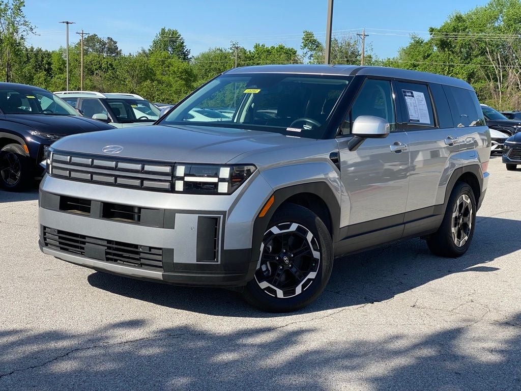 2024 Hyundai Santa Fe FWD 2.5L I4 Shiftronic Black Cloth, 18 x 7.5J Alloy Wheels, 3rd row seats: bench, 4-Wheel Disc Brakes, 6 Speakers, ABS brakes, Air Conditioning, Alloy wheels, AM/FM radio: SiriusXM, Apple CarPlay & Android Auto, Auto High-beam Headlights, Axle Ratio: 3.316, Brake assist, Bumpers: body-color, Carpeted Floor Mats, Delay-off headlights, Driver door bin, Driver vanity mirror, Dual front impact airbags, Dual front side impact airbags, Electronic Stability Control, Emergency communication system, Exterior Parking Camera Rear, First Aid Kit, Four wheel independent suspension, Front anti-roll bar, Front Bucket Seats, Front Center Armrest, Front reading lights, Fully automatic headlights, Heated door mirrors, Illuminated entry, Knee airbag, Leather steering wheel, Low tire pressure warning, Mudguards, Occupant sensing airbag, Option Group 01, Outside temperature display, Overhead airbag, Overhead console, Panic alarm, Passenger door bin, Passenger vanity mirror, Power door mirrors, Power steering, Power windows, Radio: AM/FM/HD Display Audio, Rear anti-roll bar, Rear seat center armrest, Rear side impact airbag, Rear window defroster, Rear window wiper, Remote keyless entry, Security system, Speed control, Speed-sensing steering, Split folding rear seat, Spoiler, Steering wheel mounted audio controls, Tachometer, Telescoping steering wheel, Tilt steering wheel, Traction control, Trip computer, Variably intermittent wipers, YES Essentials Stain-Resistant Cloth Seat Trim. CARFAX One-Owner.