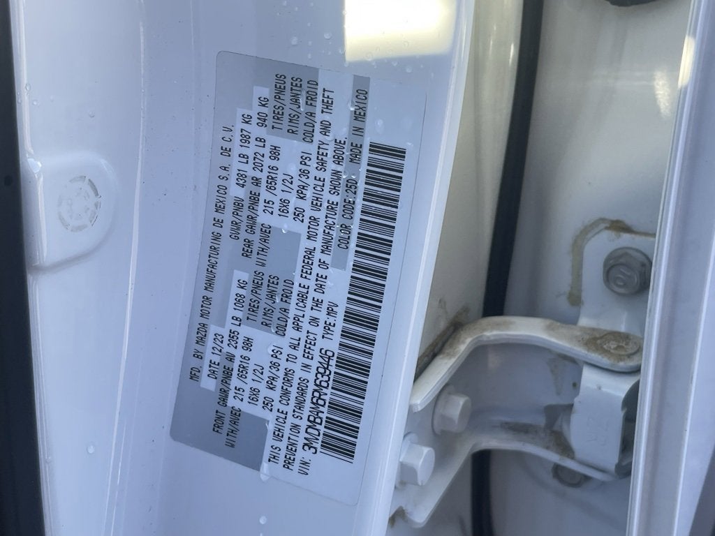 CX-30 2.5 S, 4D Sport Utility, SKYACTIV® 2.5L 4-Cylinder DOHC 16V, 6-Speed Automatic, AWD, Snowflake White Pearl Mica, Black w/Cloth Seat Trim, 16 x 6.5J Aluminum Alloy Wheels, 4-Wheel Disc Brakes, 4.095 Axle Ratio, 6 Speakers, ABS brakes, AM/FM radio, AppLink/Apple CarPlay and Android Auto, Auto High-beam Headlights, Brake assist, Bumpers: body-color, Cloth Seat Trim, Compass, Delay-off headlights, Driver door bin, Driver vanity mirror, Electronic Stability Control, Emergency communication system: Mazda Connected Services (3-year complimentary trial included), Exterior Parking Camera Rear, Front Bucket Seats, Front Center Armrest, Front reading lights, Front wheel independent suspension, Fully automatic headlights, Illuminated entry, Low tire pressure warning, MAZDA CONNECT Infotainment System, Outside temperature display, Overhead console, Panic alarm, Passenger door bin, Passenger vanity mirror, Power door mirrors, Power windows, Radio data system, Radio: AM/FM Audio System, Rear window defroster, Rear window wiper, Remote keyless entry, Snowflake White Pearl Mica Paint Charge, Speed control, Speed-sensing steering, Split folding rear seat, Spoiler, Steering wheel mounted audio controls, Tachometer, Telescoping steering wheel, Tilt steering wheel, Trip computer, Variably intermittent wipers.